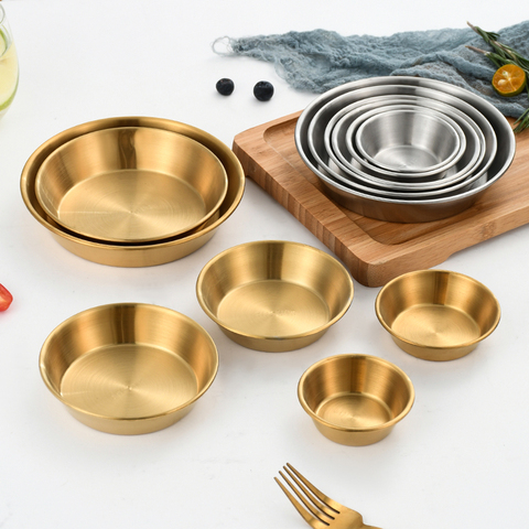 Yurtrain ถ้วยน้ำจิ้มโลหะสีเงินสีทองสำหรับซูชิและเครื่องปรุงรสเกาหลี