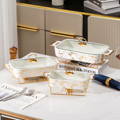 ชุดหม้อเซรามิกอุ่นอาหารหรูหรา ยูอาร์เทรน สำหรับเสิร์ฟบุฟเฟ่ต์ในโรงแรม พร้อมถาดและหม้อซุป