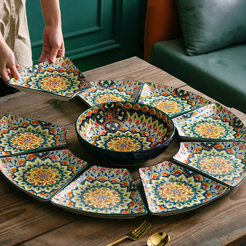 Yurtrain ชุดภาชนะอาหารโบฮีเมียนโบฮีเมียนจากประเทศจีนชุดเครื่องล้างจาน & ไมโครเวฟปลอดภัยเครื่องใช้บนโต๊ะอาหารและของตกแต่งหรูหราสำหรับงานปาร์ตี้ในบ้านและร้านอาหาร
