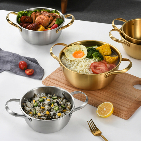 Yurtrain หม้อบะหมี่กึ่งสำเร็จรูปพร้อมฝาปิดหม้อซุปราเม็งอลูมิเนียมขนาดเล็กหม้อสต็อกวัสดุโลหะสำหรับใช้ในครัวสไตล์เกาหลี