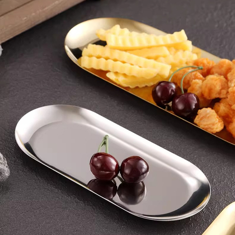 Yurtrain ถาดใส่ผ้าขนหนูทรงรีสไตล์เกาหลี, จานเสิร์ฟสแตนเลสเกรดอาหารขัดเงาสำหรับงานแต่งงานและร้านอาหาร