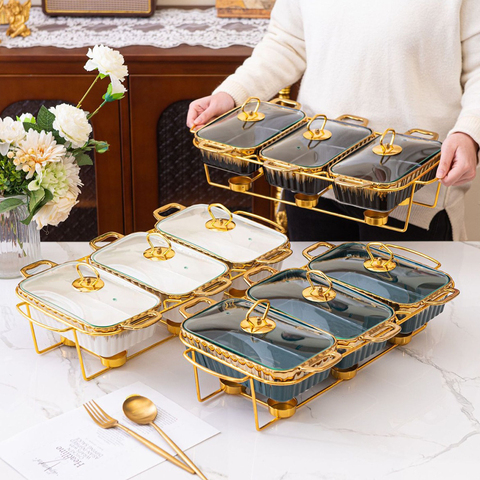 Yurtrain ชุดจานเซรามิกสำหรับจัดเลี้ยงบุฟเฟ่ต์สไตล์ยุโรป3ถ้วยชามหม้ออุ่นอาหาร