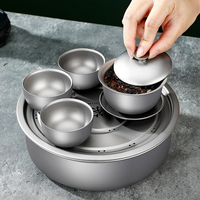 Juego de Té Portátil Ligero y Ecológico Estilo Japandi con Bolsa de Almacenamiento, Colador Integrado, Tazas de Té de Titanio y Tetera para Exteriores