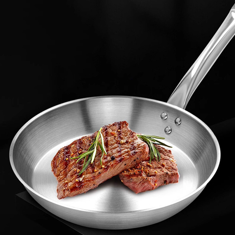 Сковорода Yurtrain Luxury из нержавеющей стали с керамическим покрытием без ПФАС, двойная обработка, антипригарная, с деревянной ручкой, для газовых и индукционных плит