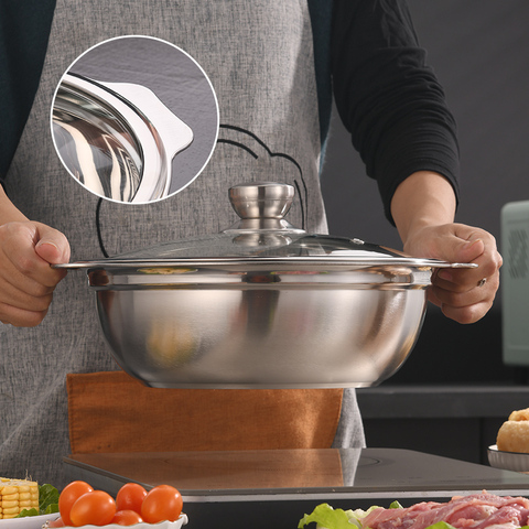 Кухонная посуда из нержавеющей стали с крышкой из закаленного стекла, совместимая с индукционной плитой