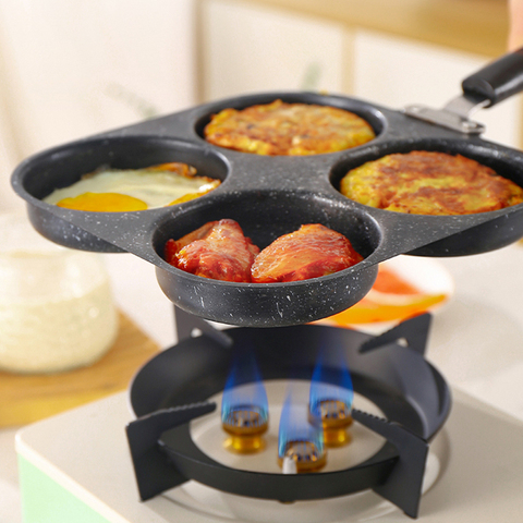 Yurtrain Aluminum Alloy Multi Hole Egg Frying Pan with Wooden Soft Touch Handle Non-Stick Coating for Pancake & Omelet Cooking
