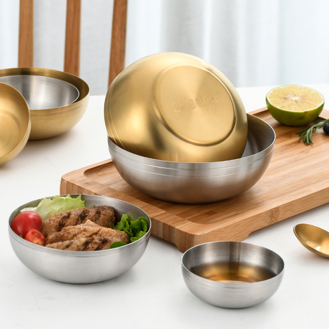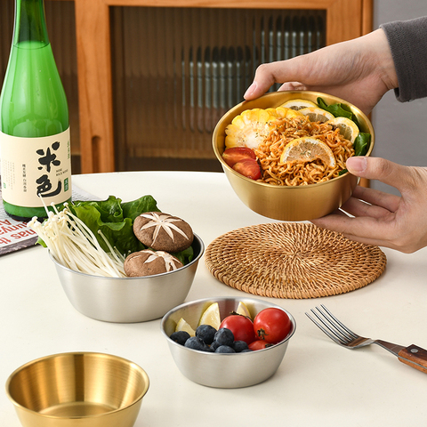 Yurtrain ชามผสมสแตนเลสพร้อมด้ามจับสีทอง/เงินแบบใช้แล้วทิ้งอเนกประสงค์สลัดข้าวชามไวน์ข้าวแบบเกาหลี