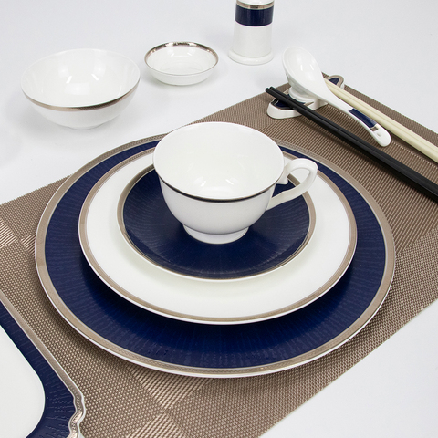 Yurtrain ชุดจานอาหารแบบตะวันตกที่ทนทานระดับไฮเอนด์จานสเต็กขอบสีทองน้ำเงินโต๊ะในร้านอาหารของโรงแรมงานแต่งงาน