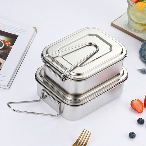 Yurtrain ชามสแตนเลสแบบพกพาสำหรับปิกนิกกลางแจ้งการเดินทางแบกเป้และเดินทางพร้อมที่จับชุดเครื่องใช้บนโต๊ะอาหารแบบใช้แล้วทิ้ง