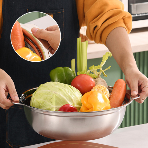 Cuenco para mezclar de acero inoxidable Yurtrain con mango dorado/plateado, cuenco desechable multiusos para Fideos de arroz, ensalada, cuenco de vino de arroz coreano