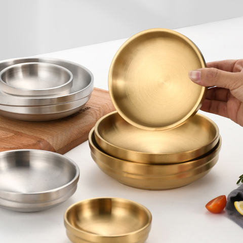 Tazón de Metal dorado de acero inoxidable de estilo coreano Yurtrain, almacenamiento desechable al por mayor de alta calidad para sopa de arroz y Kimchi